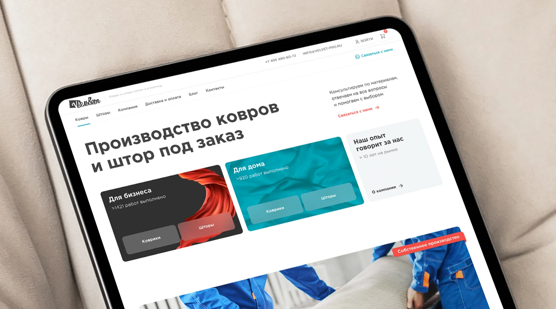 Сайт для производства ковров и штор под заказ: сложный личный кабинет, калькулятор расчета стоимости товаров и техническая поддержка на протяжении 6 лет