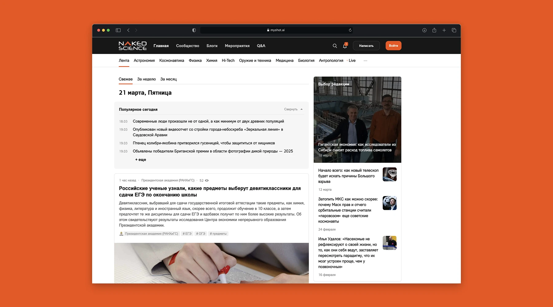 Техническая поддержка журнала с новостями науки