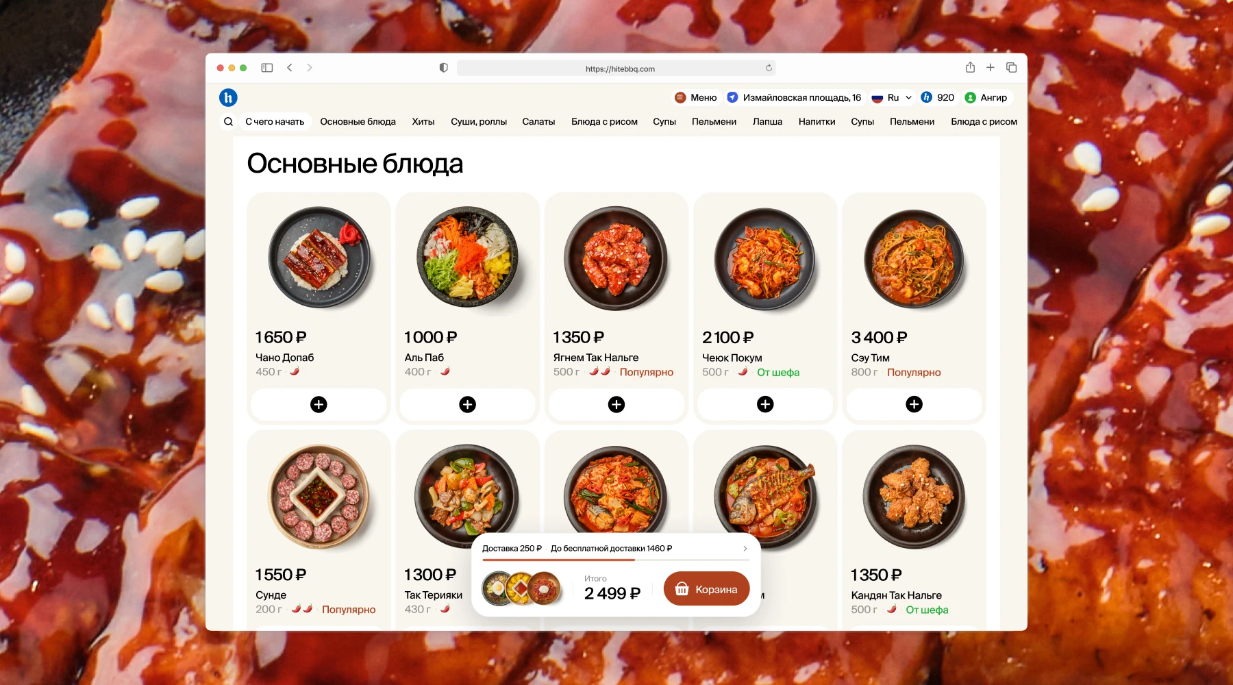 Интернет-магазин для №1 сети ресторанов корейского барбекю в Москве